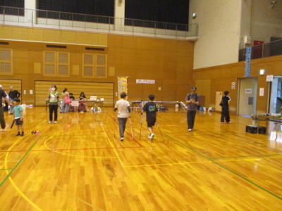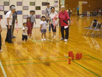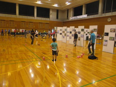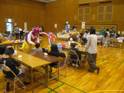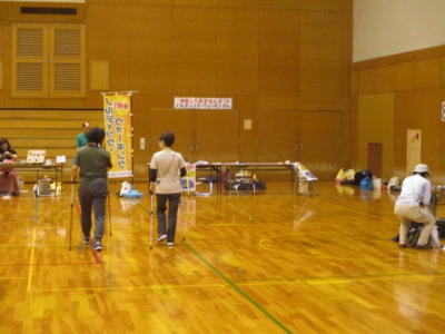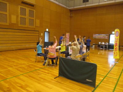 色々なブースが設けられ、歩行姿勢測定、体組成測定、健康相談、ニュースポーツ体験、バルーンアート、野菜やパンの販売、地元特産品のおたのしみ抽選etc…。