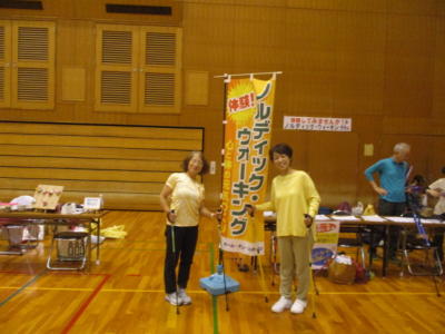 もちろん、ノルディックウォーキングの体験も行いました。