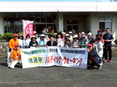 あわただしくポールをお渡し(マイポール持参の方多数おられました)して開会式・・今年は三原市長も来られ、参加者の皆さまにご挨拶(歩きませんでしたが・・ストレッチはしっかりしていただきました)。